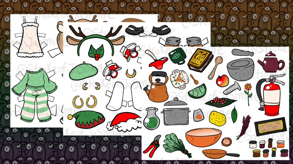 šPrintable Holiday Elf dress-up doll | Black elf | Cute | Anime